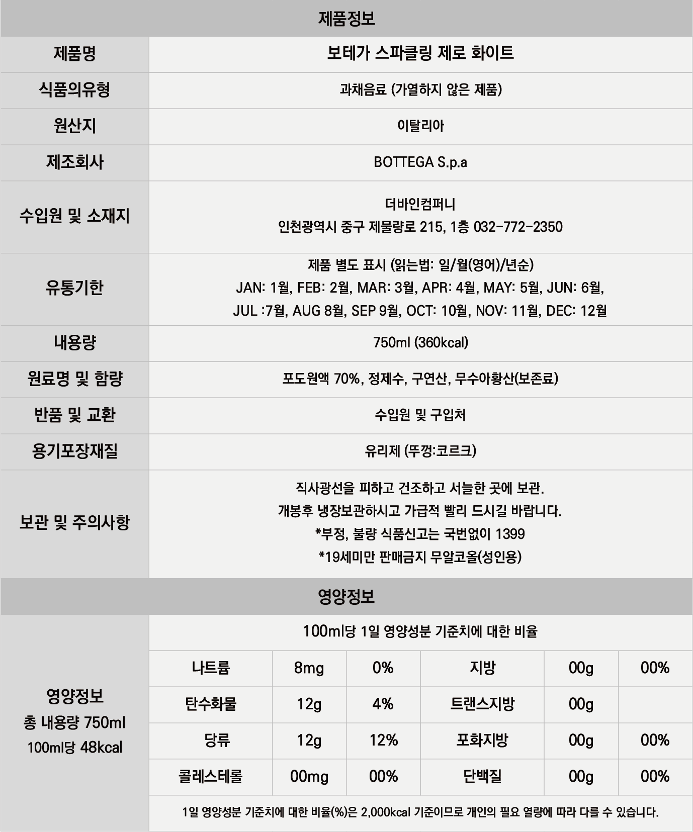 논알콜와인 제품은 유통기한이 60일 이상 남은