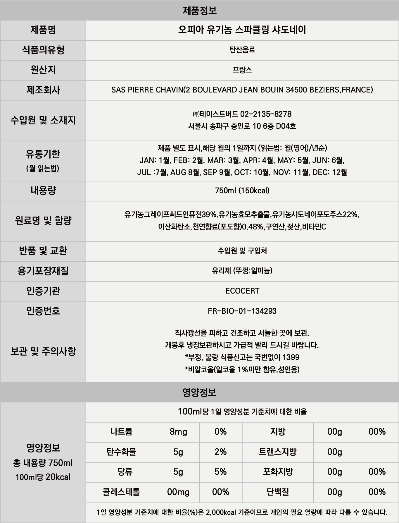 최초의 유기농 논알콜 와인 입니다.