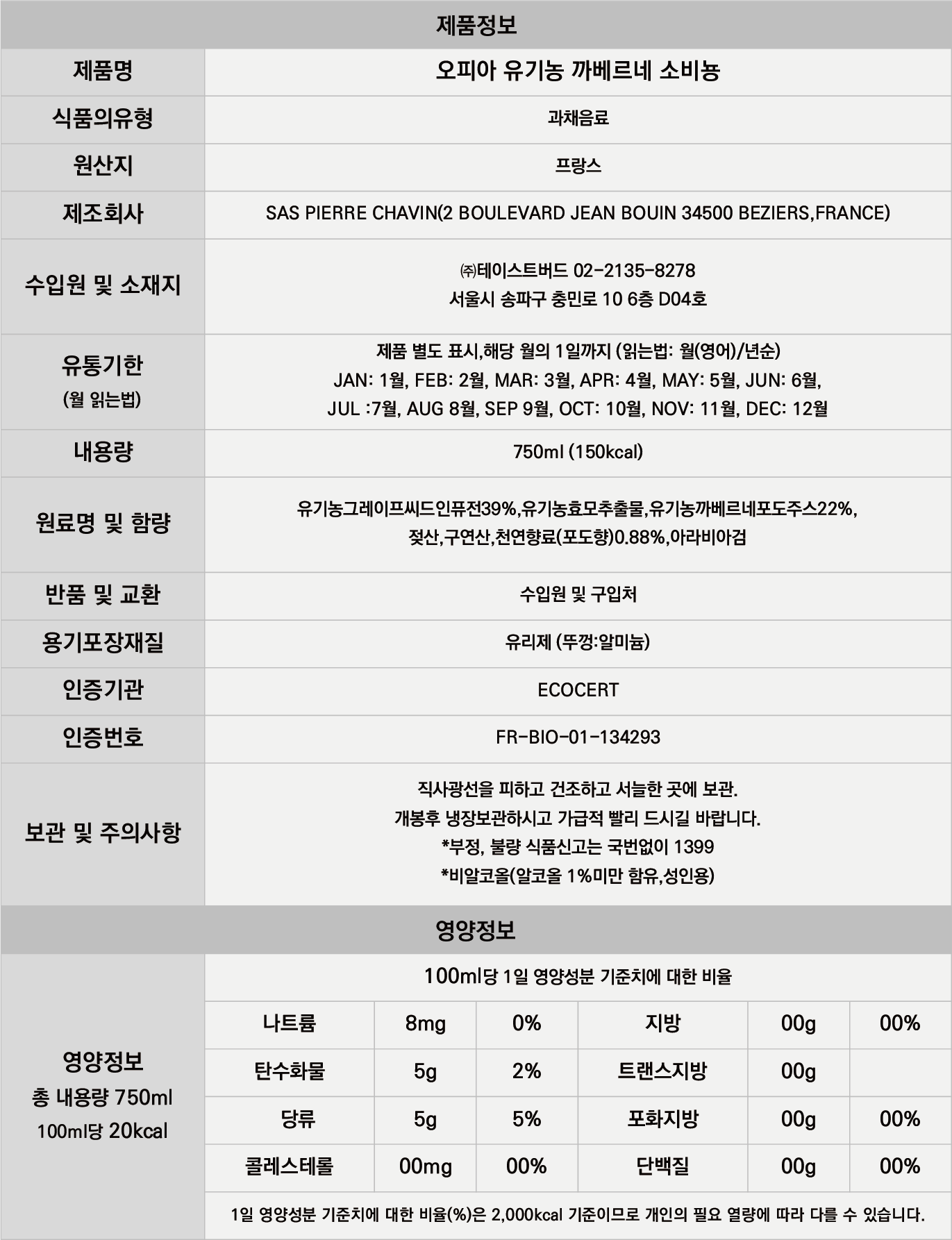 최초의 유기농 논알콜 와인 입니다.