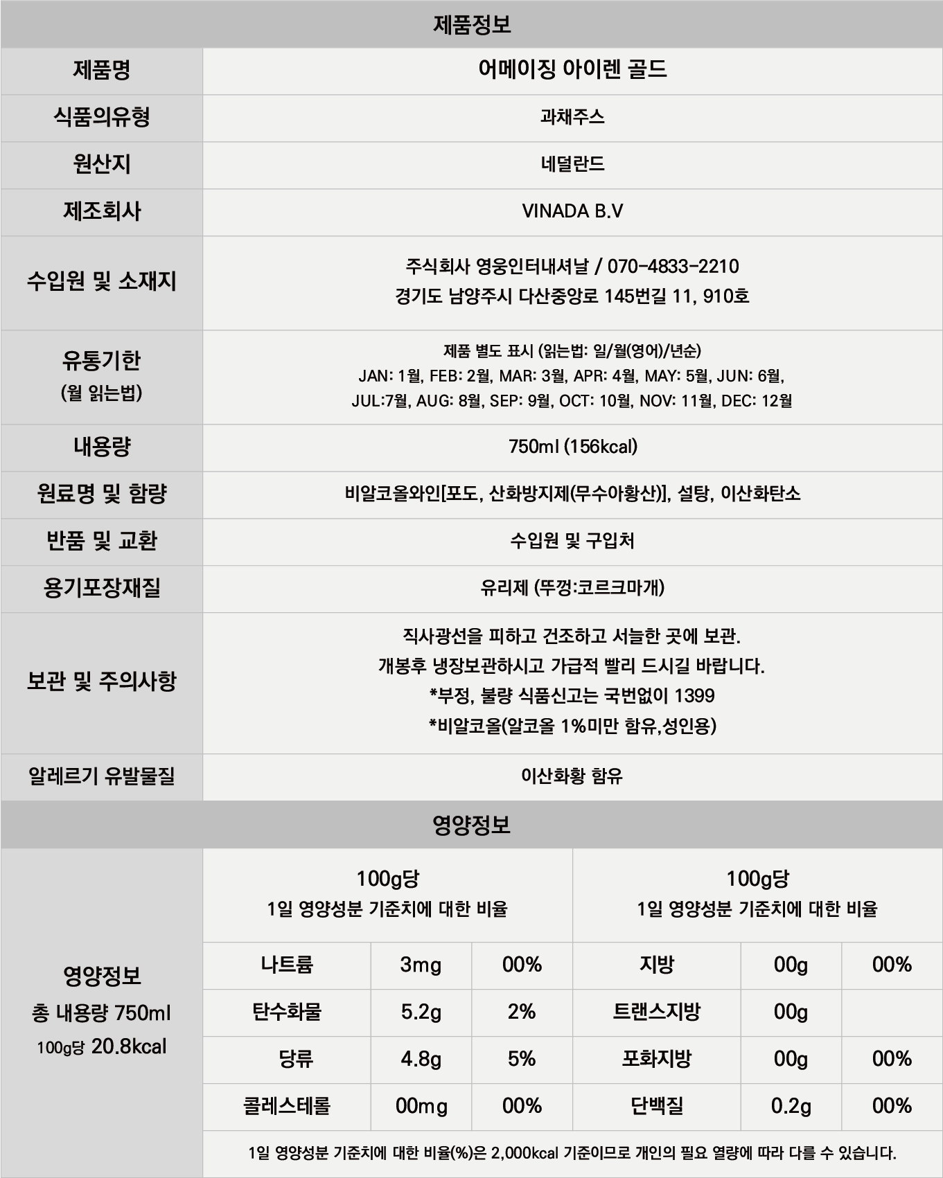 고혹적인 황금색과 상큼한 맛이 환상적입니다.