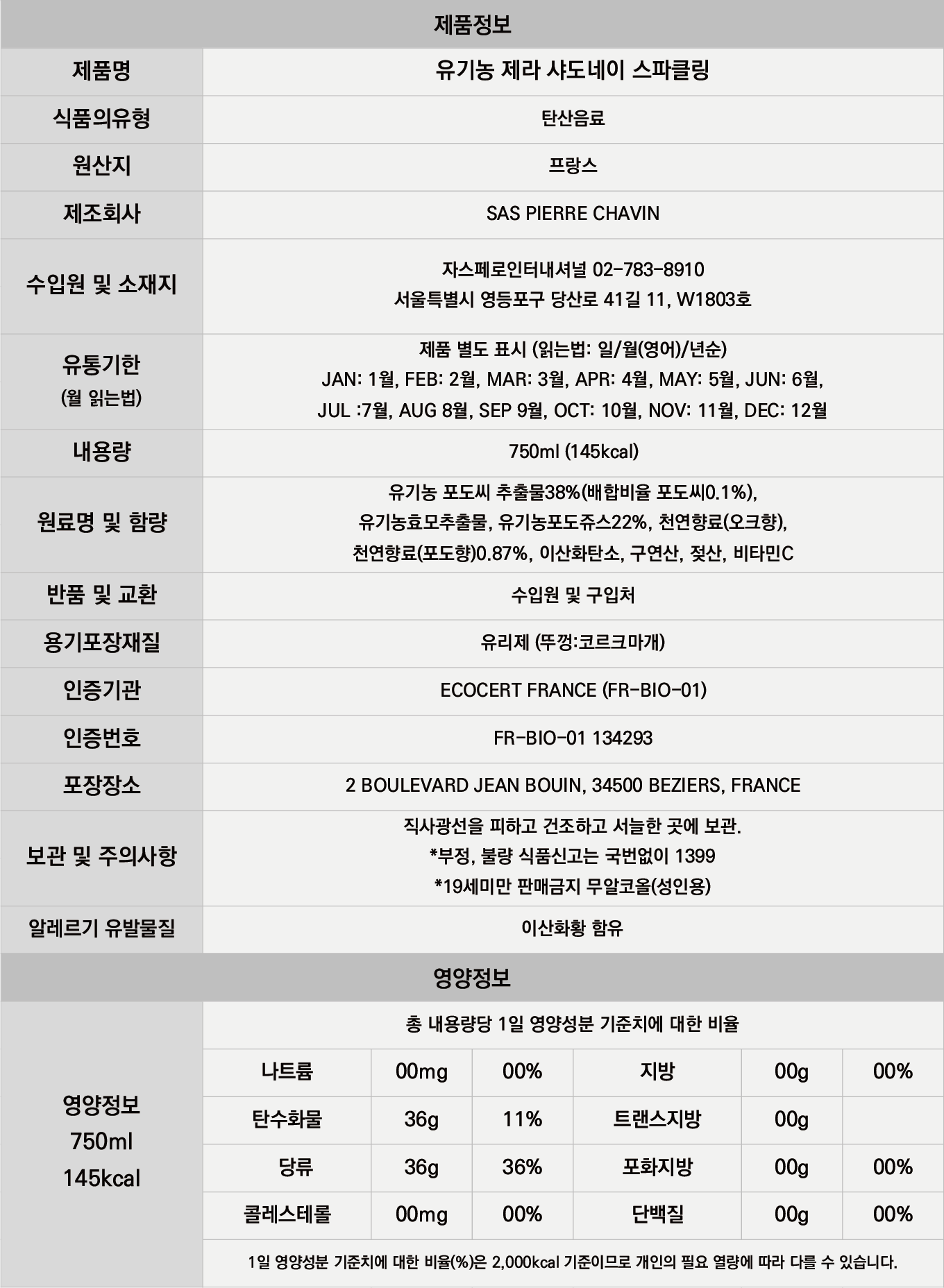 논알콜와인 제품은 유통기한이 60일 이상 남은