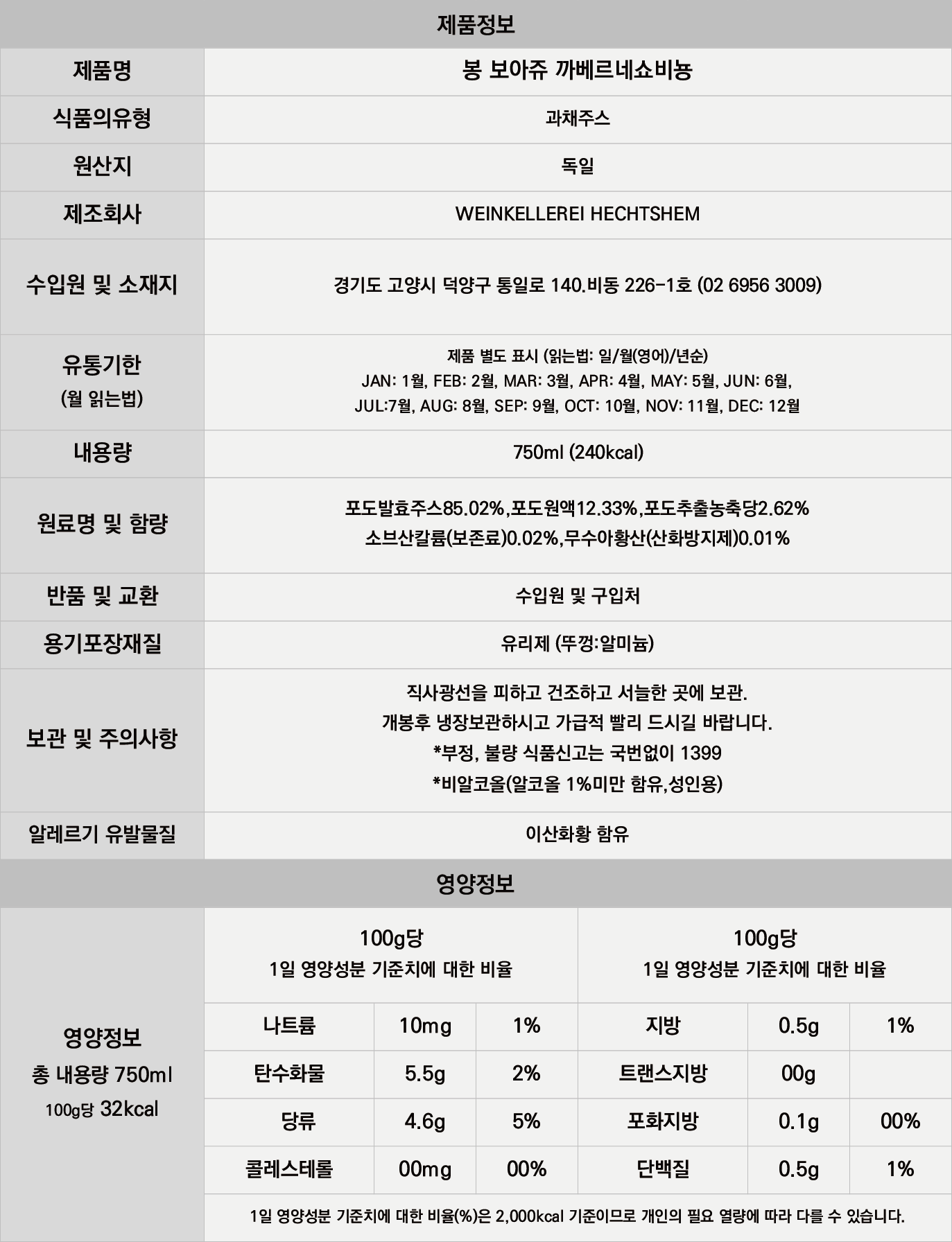봉보야쥬의 논알콜 까베르네소비뇽 와인 입니다.